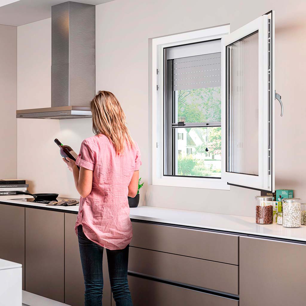 The Roll-Infly system is a rollup vertical flyscreen to be integrated into the cassette of roller shutters. It consists of the preloading device with the spring connected to one of the roller shutter end caps, and the neutral pin with AQUS brake connected to the opposite roller shutter end cap. The retractable end pin and the one-direction spring charge make the integration easy and fast: else than other existing similar devices, the Roll-Infly spring is charged before the insertion of the tube into the roller shutter cassette. Pre-charge, insert, remove, and insert again the tube with the mesh as many times as you need; the spring remains always charged. The Roll-Infly kit can be completed with the supply of different types of Genius mesh on tube in 6 meters long bars. Different size and shapes of the tube and a big variety of possible meshes available.